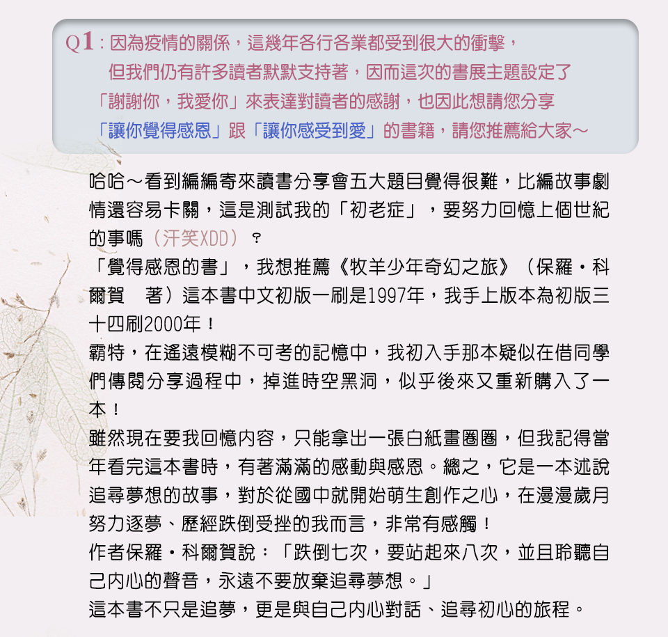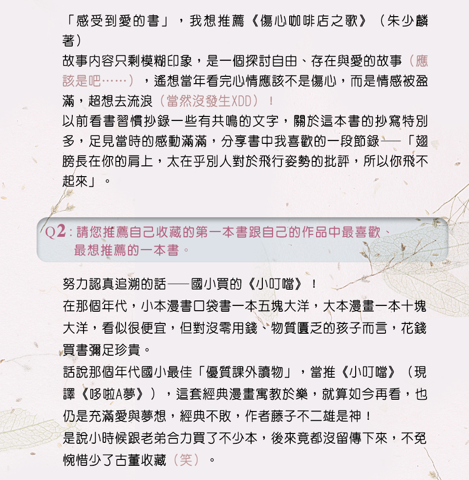 【天馬行空的作家讀書分享會】with 七巧