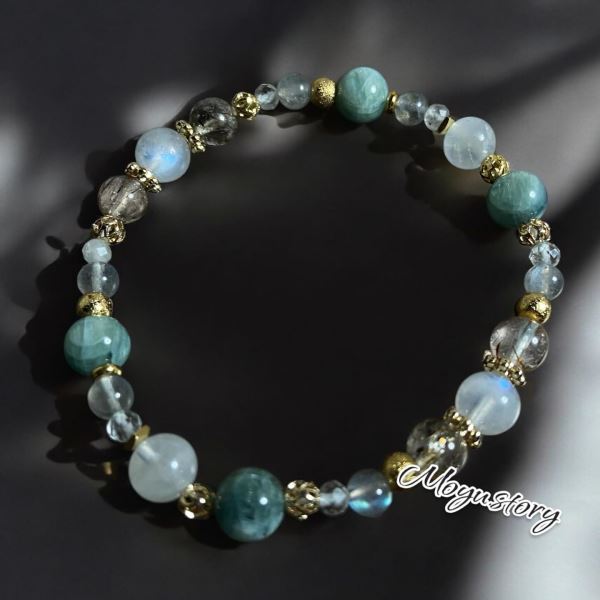 蔚藍之心│藍月光 綠藍晶 拉長石 紅髮晶