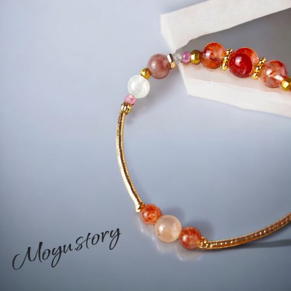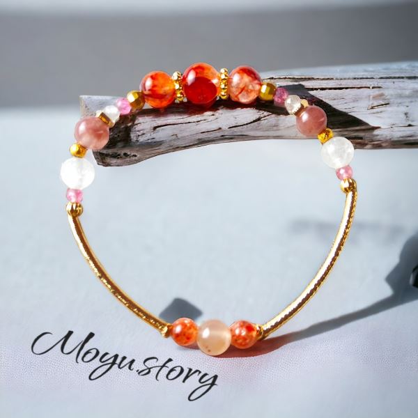 桃夭│紅膠花 兔毛晶 草莓晶 漢白玉